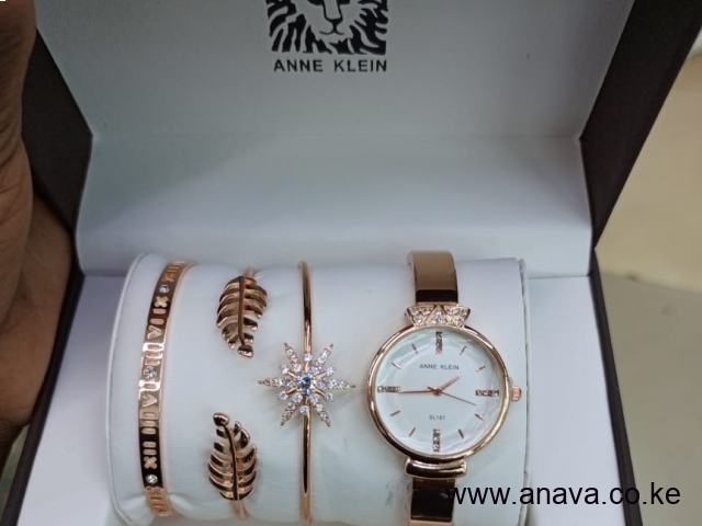 ANNE KLEIN ROSE GOLD GIFT ST OF WATCH + 3 BRACELETS FOR LADIES