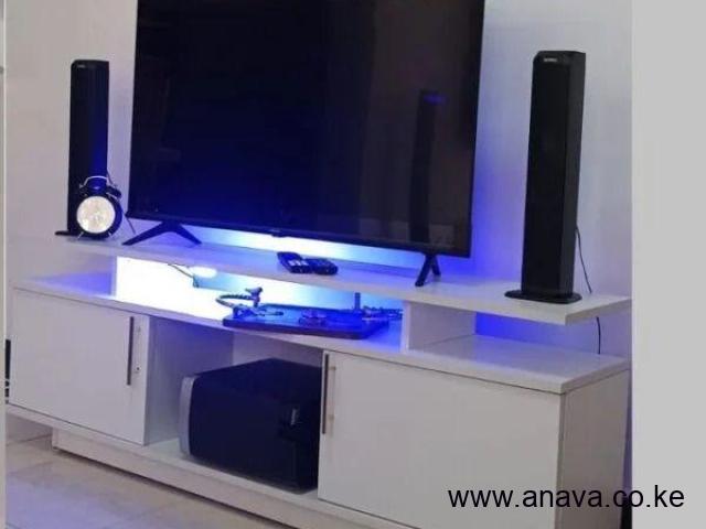 Oslo Modern Wooden TV Stand 5ft With LED LightFeatures⭐Strong and durable⭐Elegant design⭐Laminated MDF boards⭐Locally Made⭐Size; L150xW30xH50